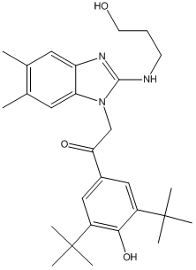 • 1-(3,5-di-tert-butyl-4-hydroxyphenyl)-2-(2-(3-hydroxypropylamino)-5,6-dimethyl-1H-benzo[d]imidazol-1-yl)ethanone