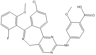 4-(9-chloro-7-(2-fluoro-6-methoxyphenyl)-5H-benzo[c]pyrimido[4,5-e]azepin-2-ylamino)-2-methoxybenzoic acid