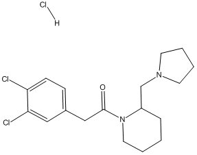 • 2-(3,4-dichlorophenyl)-1-(2-(pyrrolidin-1-ylmethyl)piperidin-1-yl)ethanone hydrochloride